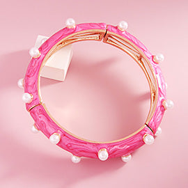 PEARL EMBELLISHED MARBLED ENAMEL STRETCH BANGLE BRACELET