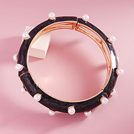 PEARL EMBELLISHED MARBLED ENAMEL STRETCH BANGLE BRACELET