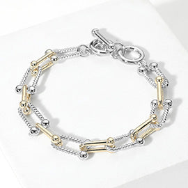 14K GOLD PLATED TWO TONE HARDWARE LINK TOGGLE BRACELET