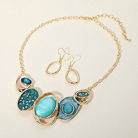 ABSTRACT ENAMEL GEMSTONE LINK STATEMENT NECKLACE