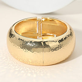 CHUNKY HAMMERED METAL HINGED BANGLE BRACELET