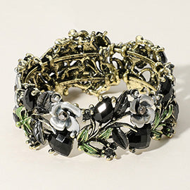 GLASS CRYSTAL METAL FLOWER LEAF EVENING BRACELET