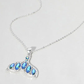 STONE EMBELLISHED WHALE TALE PENDANT NECKLACE