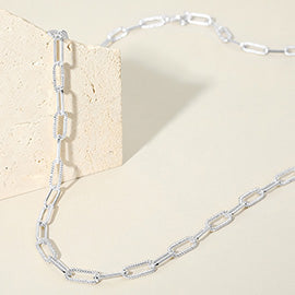 TEXTURED METAL PAPERCLIP CHAIN LONG NECKLACE